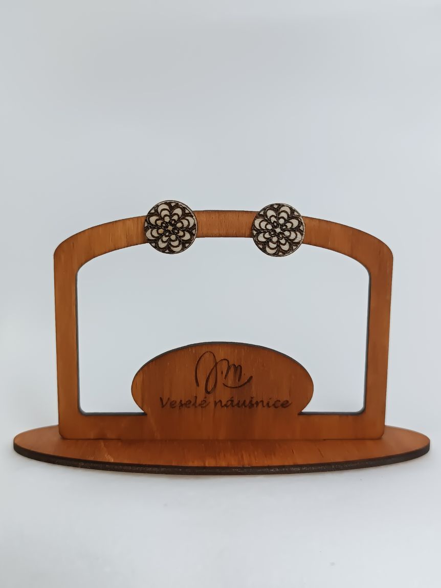 Dřevěné gravírované náušnice s puzetami z chirurgické oceli – vhodné i pro alergiky