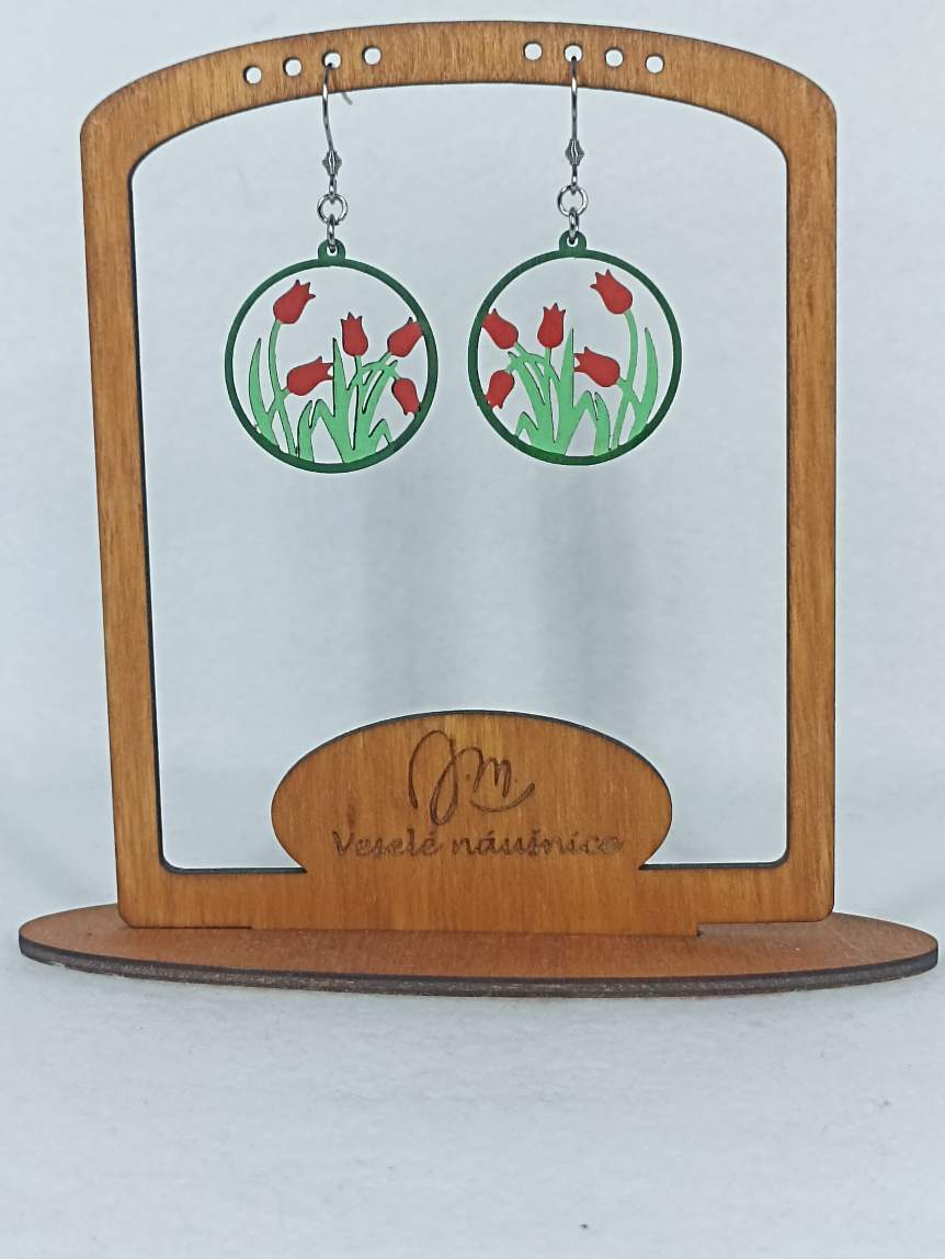 Dřevěné, ručně malované náušnice s afroháčky z chirurgické oceli – vhodné i pro alergiky
