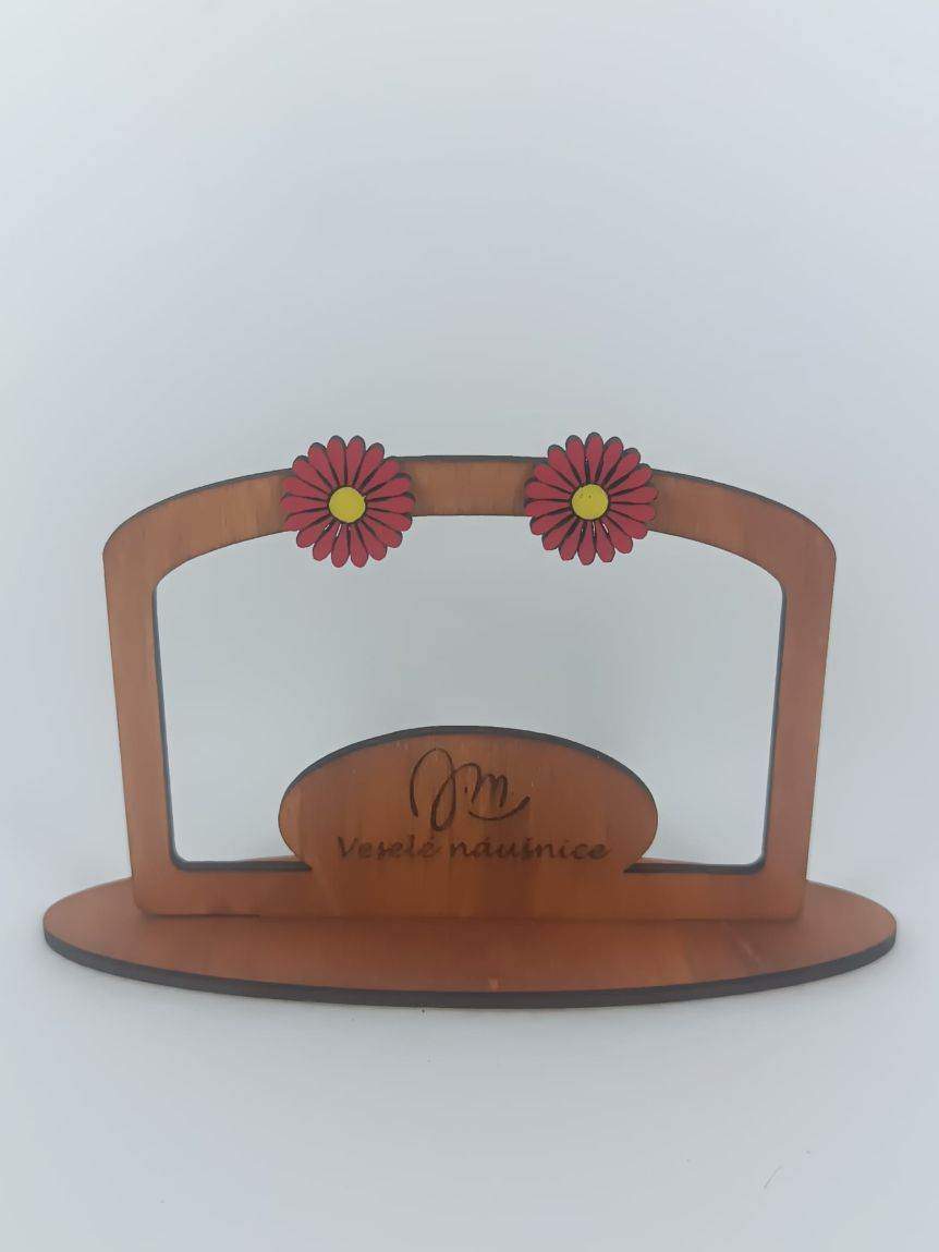 Dřevěné, ručně malované náušnice s puzetami z chirurgické oceli – vhodné i pro alergiky