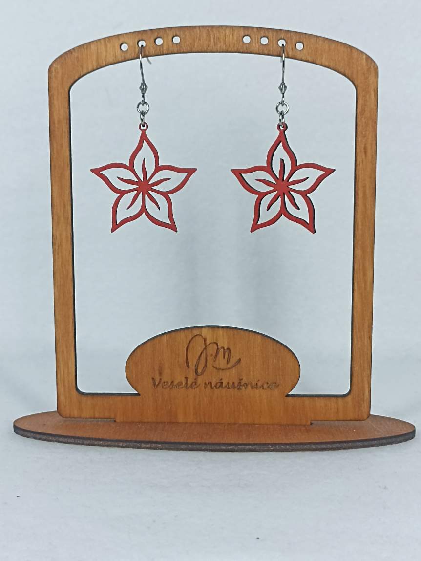 Dřevěné, ručně malované náušnice s afroháčky z chirurgické oceli – vhodné i pro alergiky