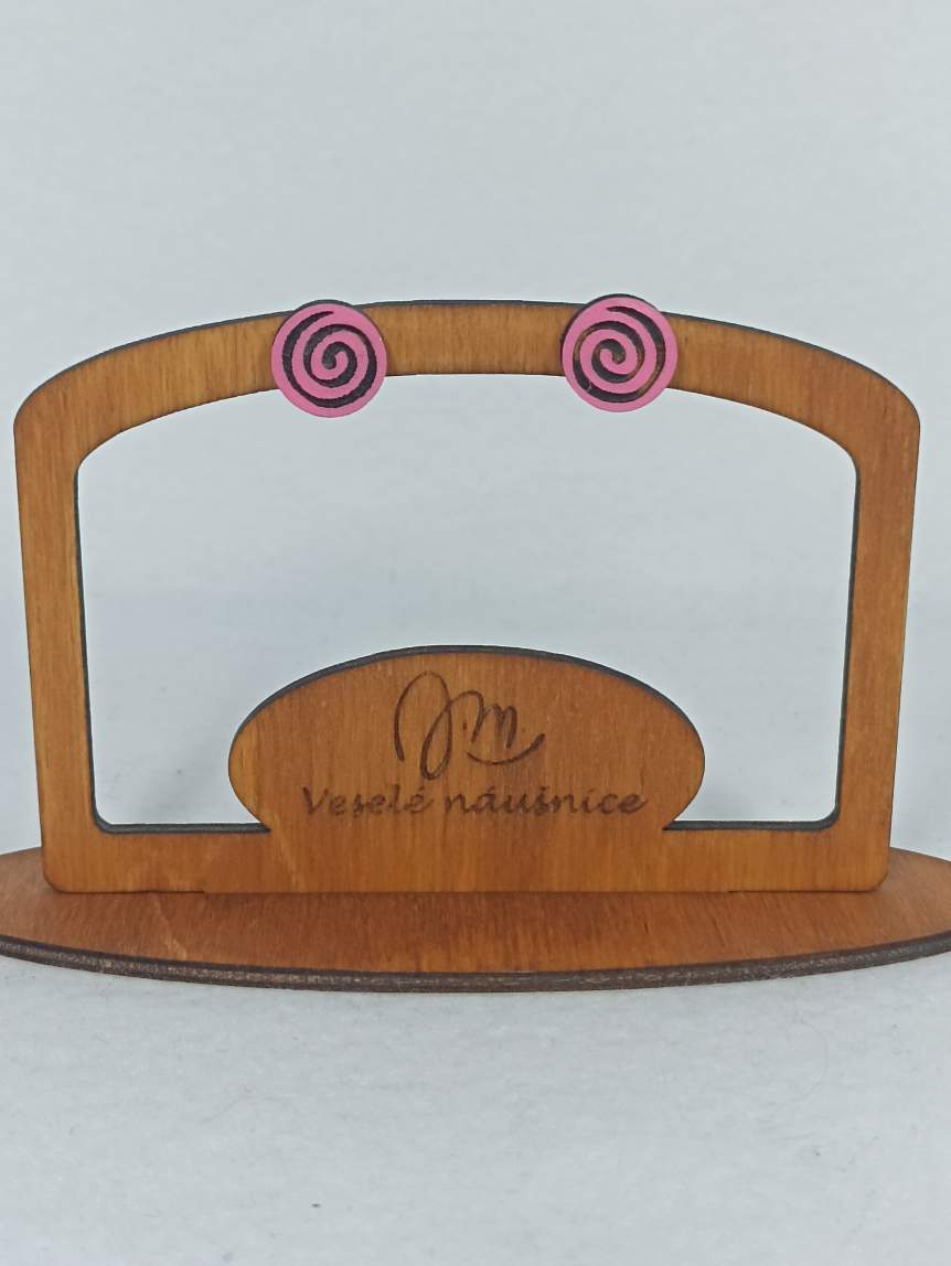 Dřevěné, ručně malované náušnice s puzetami z chirurgické oceli – vhodné i pro alergiky