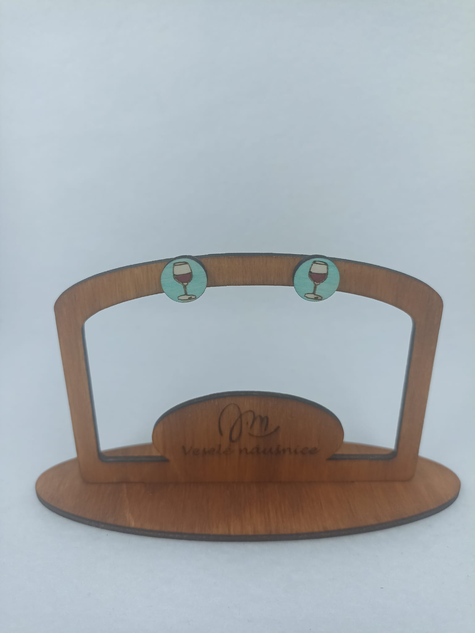 Dřevěné, ručně malované náušnice s puzetami z chirurgické oceli – vhodné i pro alergiky